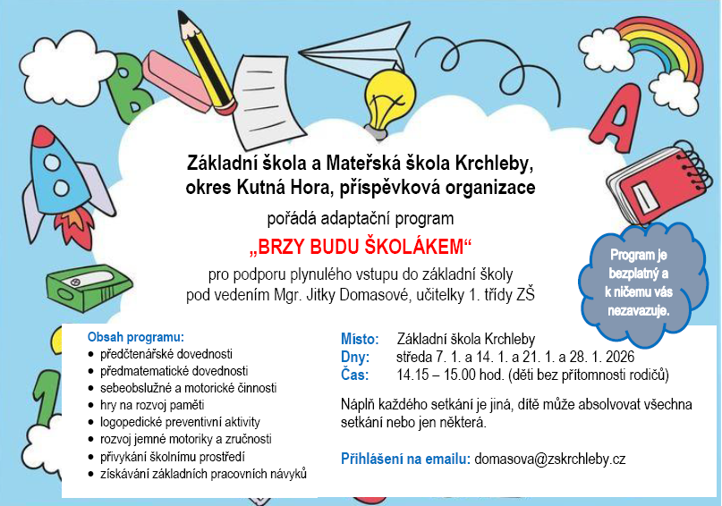 Srdečně zveme předškoláky na adaptační program pro podporu plynulého vstupu do základní školy.